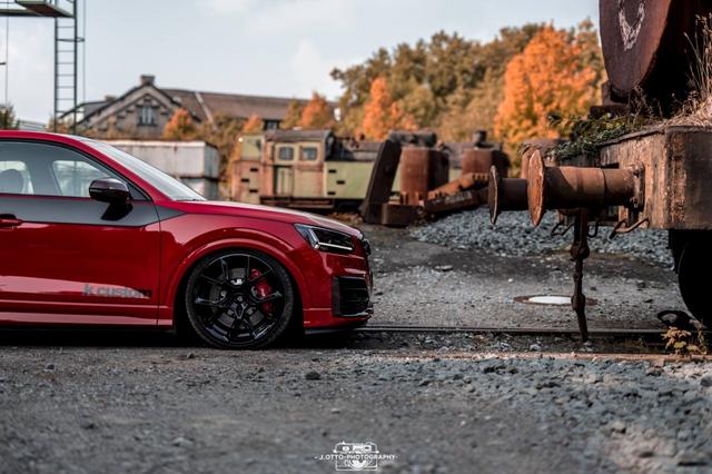 而在早已交车的海外市场,这台奥迪Q2早已不甘原厂姿态,换上气动避震降低了车身。搭配上气动避震,亮黑色MB Design轮毂与红色卡钳,喷黑了中网,镀铬饰条和奥迪标,这台原本是“呆萌”的Q2现在已经带有一身的运动范了!