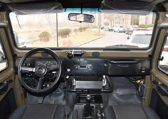 其侧面造型同样老派,横平竖直的线条没有丝毫现代感,铆钉都裸露在外,粗犷之极。车顶可以拆卸,各处细节都能唤起老一辈人的回忆。对于这种车来说,外挂式备胎也是肯定要有的。就外形而言,BJ212依旧保留了原始的设计,已经有53年之久了,真真是复古之极。