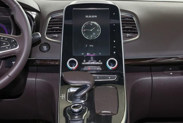 内饰部分,Espace的设计走的是简约的路线,整体风格并没有太过激进,还是有一点居家清新的氛围。由于A柱角度的设计,其后方三角区比较大,能有利减小盲区,提高行车安全性。方向盘的造型也是熟悉的雷诺风格,加上有一点的平底设计,相比其他MPV车型还是有性格的。中控台为T形设计,竖形区域有种悬浮式的感觉,效果很棒,下方那个蛇形的电子档把颇有设计感,质感也是不错。
