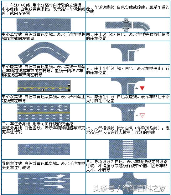 这个是需要看明白的,走错了的话很容易造成违章。比如无论是白实线还是黄实线,都是不能压到的,导流线也是不能压到,看见人行横道要礼让行人等。