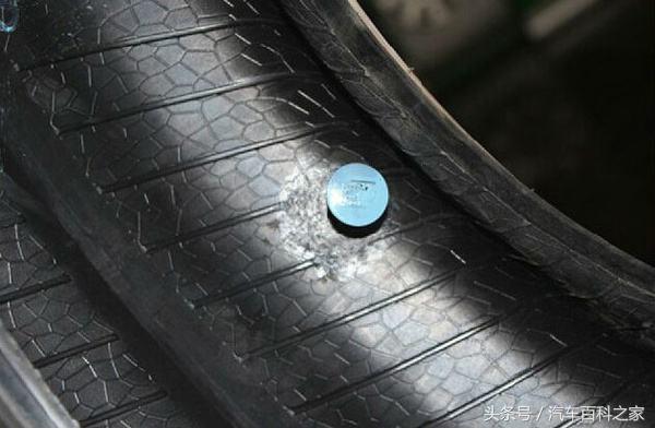 3.蘑菇钉补胎,也叫胶钉。这个补胎的操作方法和上面冷补的方法相同,唯一不一样的就是补胎的材料不一样,这个材料除了一个和冷补一样的胶片外,在胶片的中心还有一个橡胶尾巴,样子就像是一个小蘑菇,像大头钉。补胎时除了把胶片贴上,这个胶条尾巴也要从轮胎内侧穿出来,穿到轮胎外侧,再把多余的减掉。这个可靠性就非常高了,也完美解决了冷补的不足,扎钉处的轮胎中间都填补上东西了,洞口也堵住了。就是价格要贵一些,便宜的得一百多。