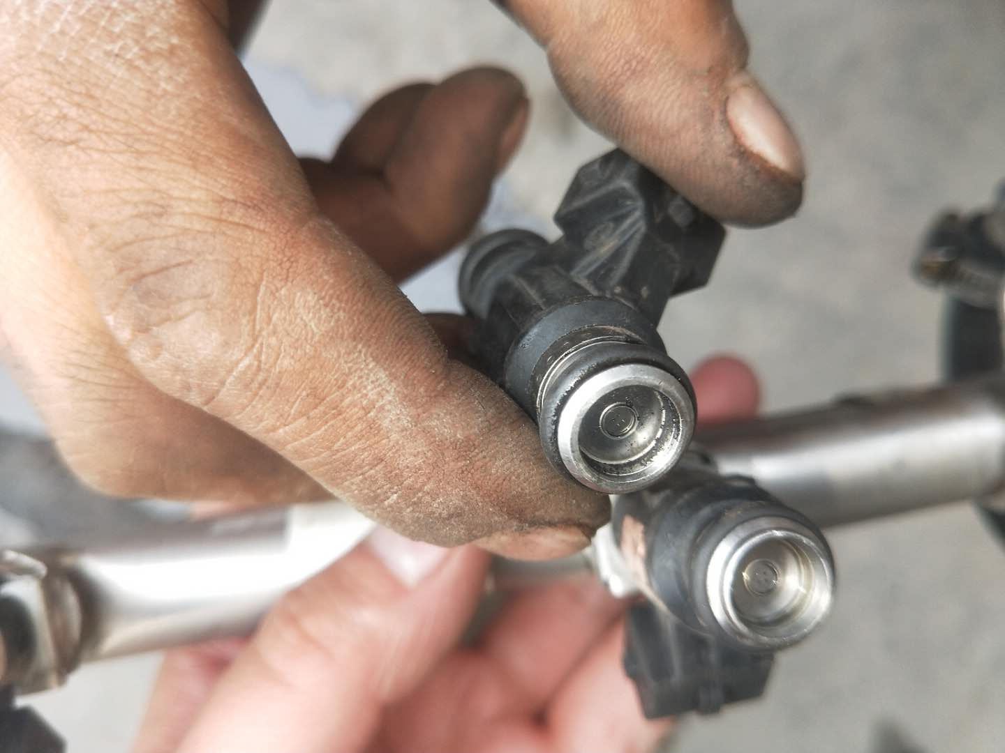 拆下4缸喷油嘴,胖哥准备清洗一下。