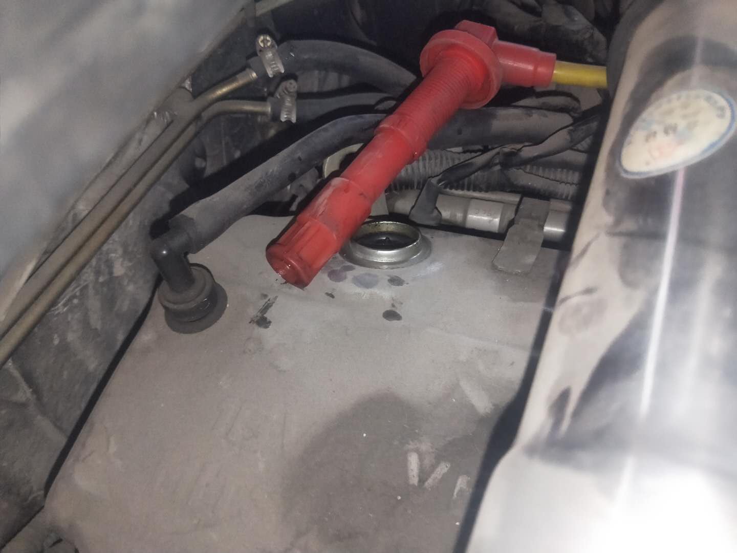 胖哥先拆下4缸火花塞,发现缸线高压包上面有大量机油渗出。说明火花塞油封漏油,不过失火和渗油没有关系。