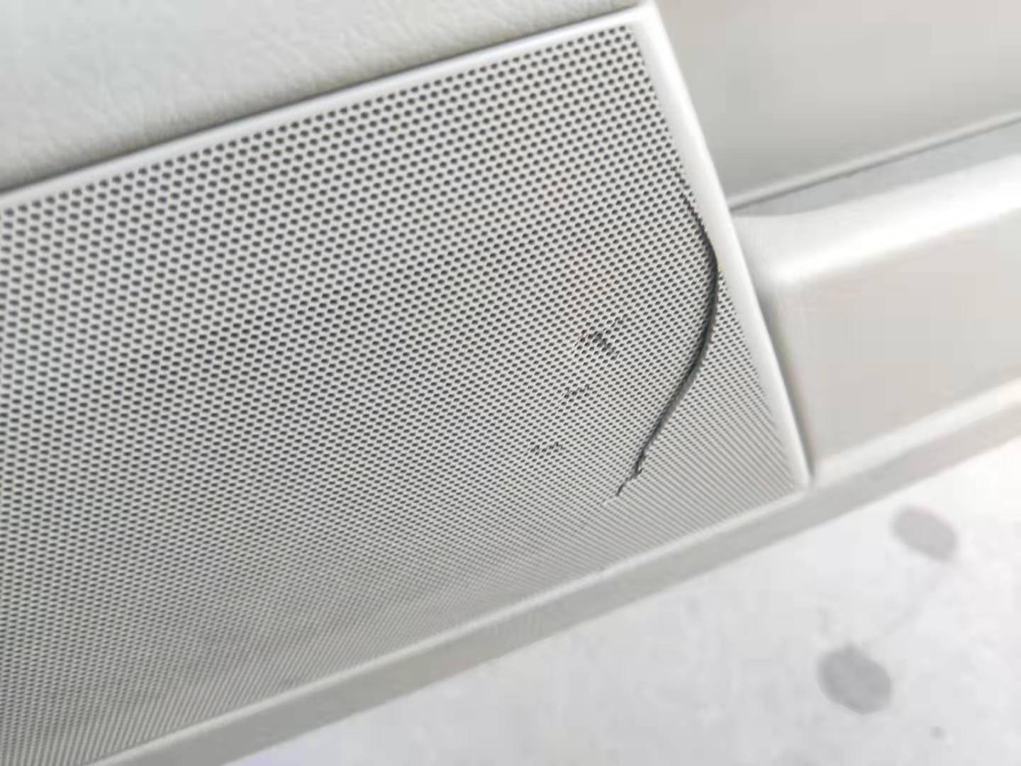 副驾驶车门喇叭壳破裂,从痕迹判断应该是关门时或者车门打开时被硬物磕碰了。