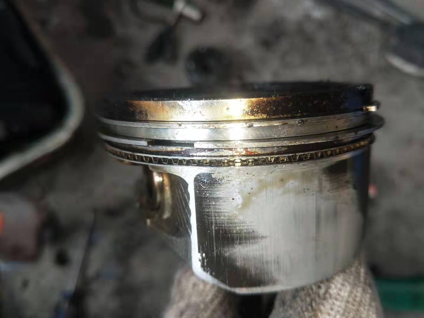 活塞裙面磨损有点大,摩擦面也不均匀。