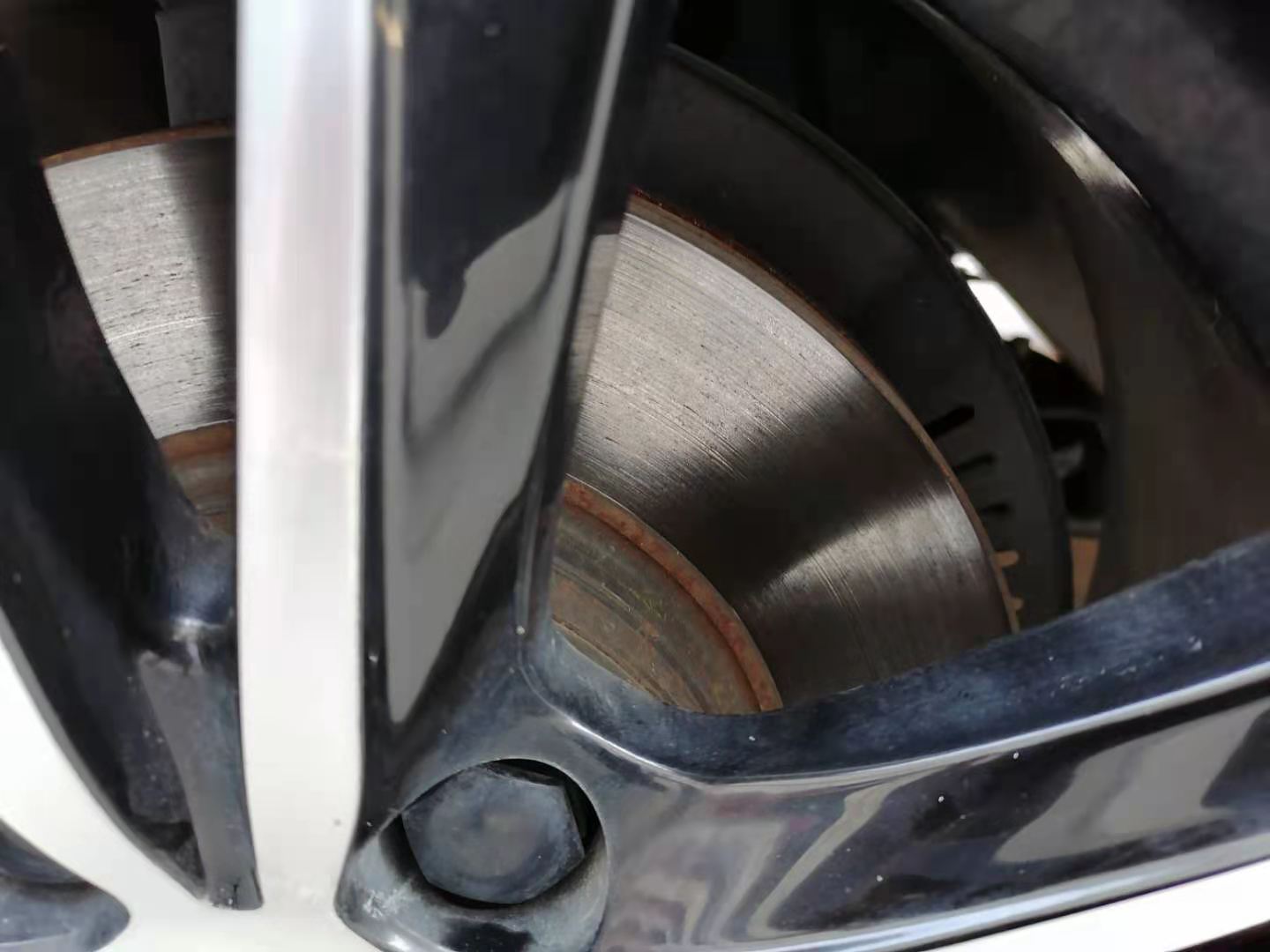 用手触摸前轮刹车盘边缘,几乎感觉不到一点点磨损。