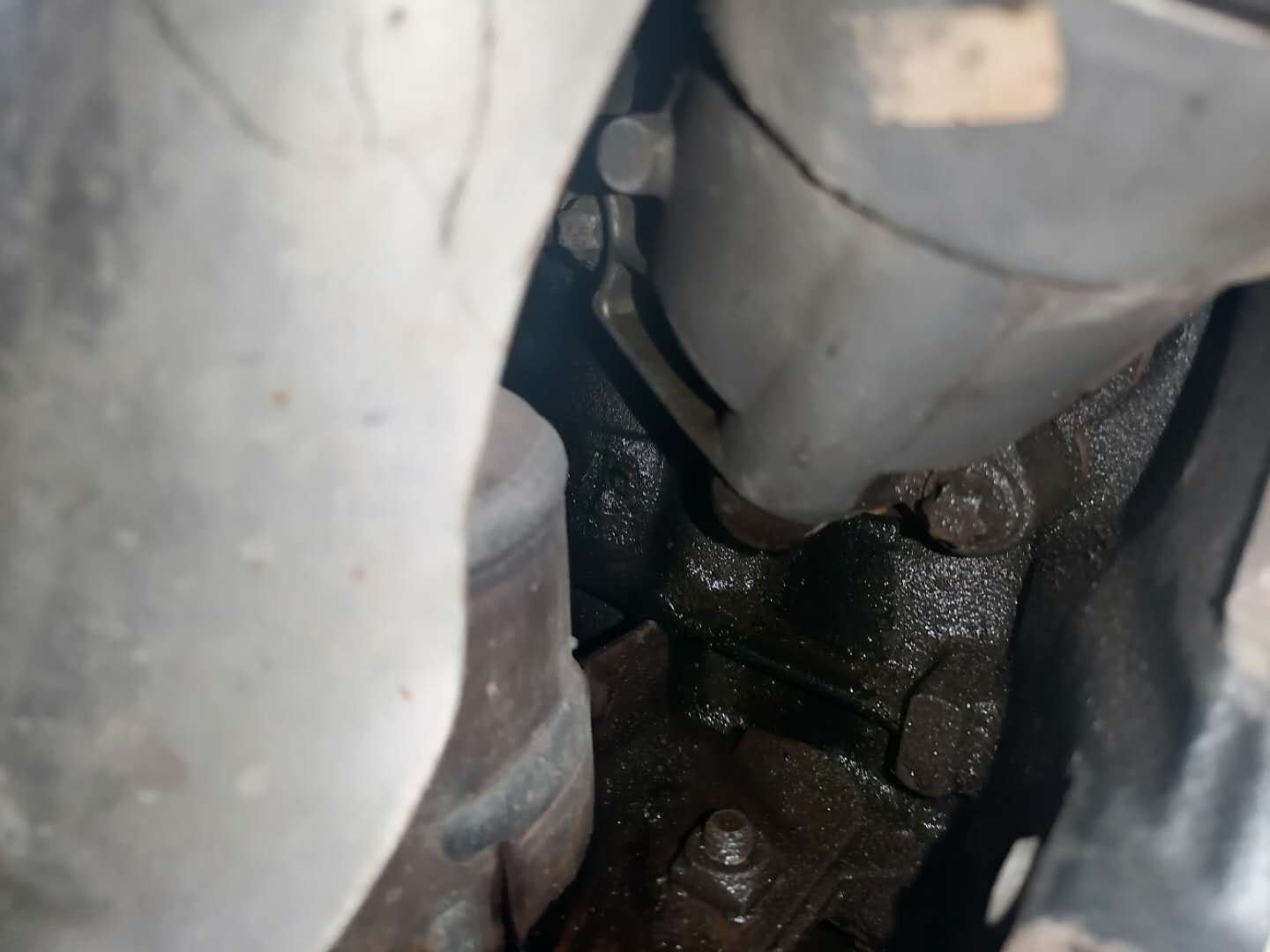 机滤座位置可见大量机油,这个不用多想肯定是机油散热器漏油了,排气管温度高机油漏到排气管上面冒烟了。