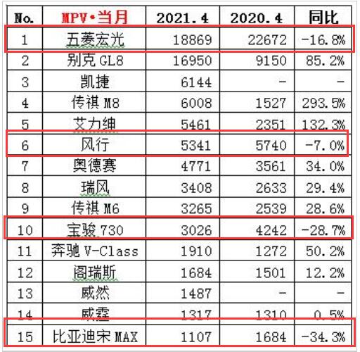 显然,2021年4月份,中国车市MPV车市取得了非常不错的销量成绩。但是,遗憾的是,从2021年4月份销量前15名车型来看,依然有4款车型呈现逆势下滑趋势,拖了行业的后腿。本文,车宇世界且为大家介绍下这些车型。