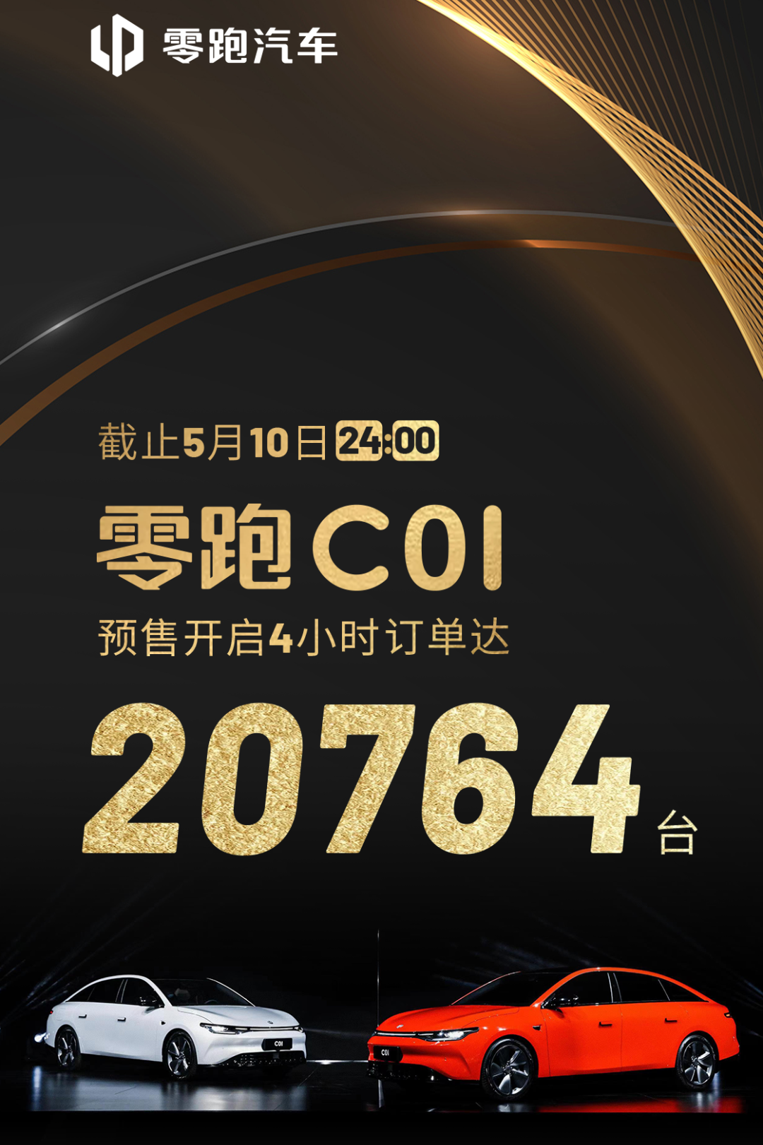截止5月10日凌晨,零跑全新中大型轿车C01预售开启4小时,其订单量便达到了20764辆。上一个有这般订单销量表现的车型还是五菱宏光MINIEV,所以,零跑C01这次终于切中了国人的用车需求?