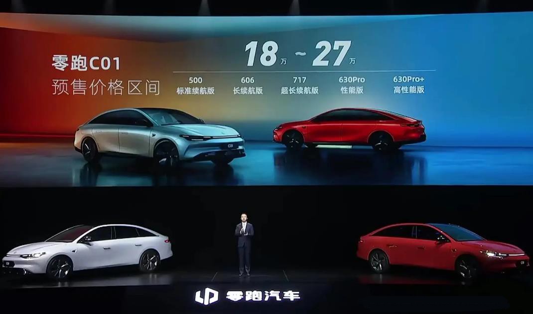 作为零跑汽车最新推出的中大型轿车,零跑C01共发布了5个配置版本,分别为500标准续航版、606长续航版、717超长续航版及630 Pro性能版、630 Pro+高性能版。